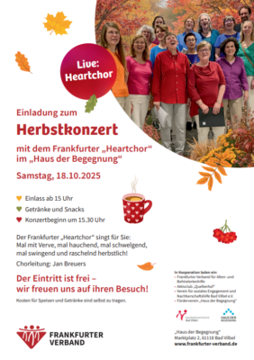 04 Okt. Herbstkonzert des Frankfurter „Heartchor“ am 18. Oktober im „Haus der Begegnung“