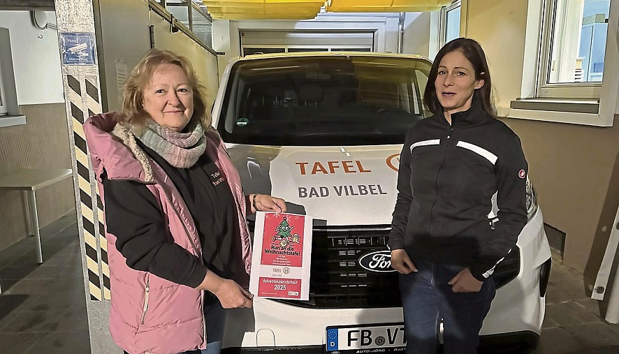 Foto: Tafelleiterin Christa Gobst (links) freut sich über die Initiative von Astrid Vogler, in Bad Vilbel einen Adventskalenderlauf zugunsten der Tafel ins Leben zu rufen.